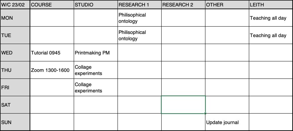 Workplan w/c 23/02: