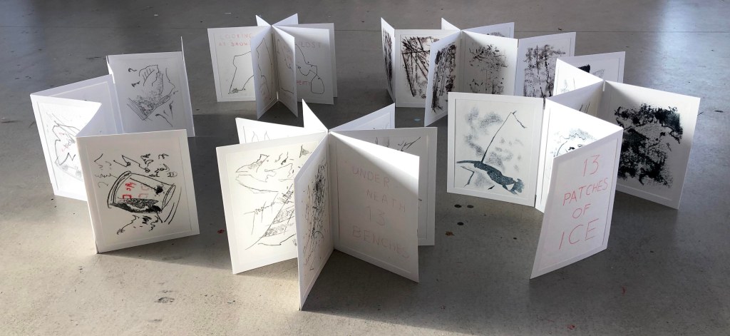 I make work that wanders a line somewhere between figuration and abstraction. Drawing is the bedrock of my practice and I work in a range of media including painting, printmaking and film making.